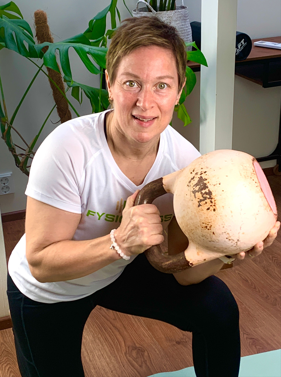 "Lähtötilanteeni: istumatyötä tekevä 54v nainen. Viimeisen neljän vuoden aikana painoa tullut lisää 7kg, ajoittain olen tuntenut itseni uupuneeksi ja tasapaino heikentynyt. Olen yrittänyt tehdä voimaharjoittelua ja tasapainon kehittämistä itsenäisesti, mutta en ole onnistunut itse tekemään harjoittelusta progressiivista. Tuloksia ei näy.