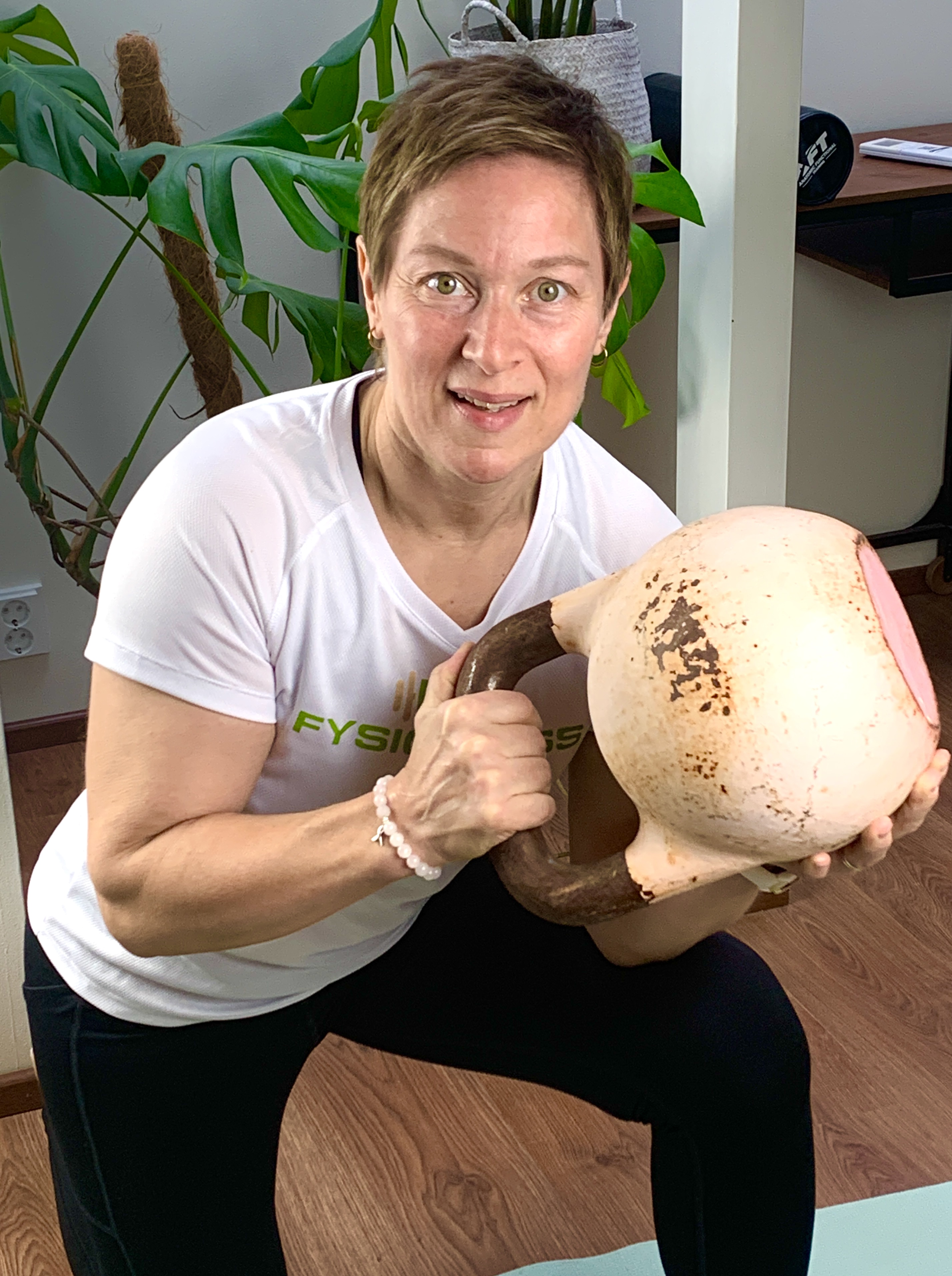 Olen fysioterapeutti ja valmentaja, joka on erikoistunut yli 40-vuotiaiden naisten voimaharjoitteluun, liikkuvuuteen ja palautumiseen. Autan naisia rakentamaan vahvan, kivuttoman ja toimivan kehon arkea varten, ilman rääkkitreenejä ja pikakikkoja.